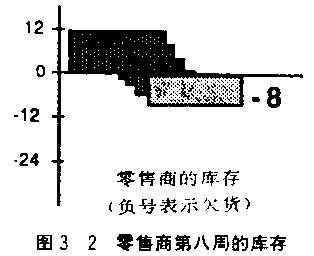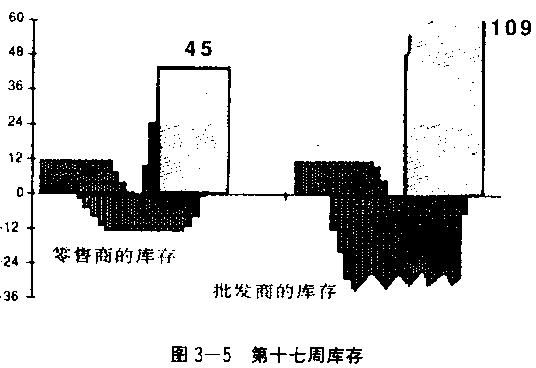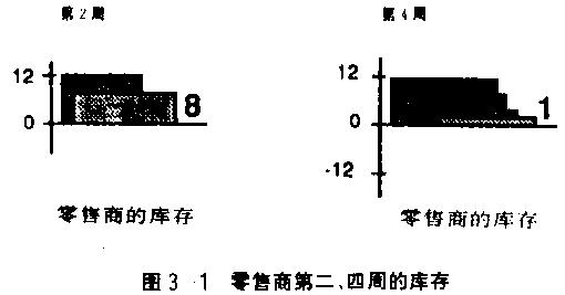 换句话说,消费者的需求提高了一次以后,在随后的模拟过程中一直是平稳的。当然,参加游戏的三个角色,除了零售商以外,没有人知道消费者的需求,而零售商所得到的消费者需求讯息,也是每周一次的片段讯息,没有什么线索得知接下来会发生什么事。